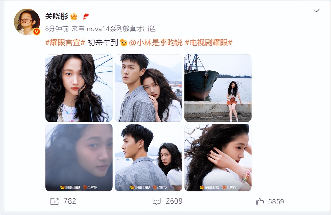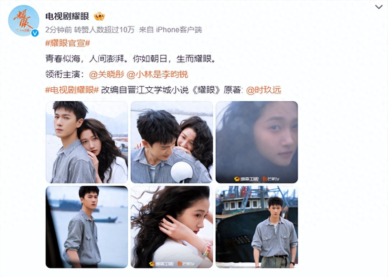 6月8日,关晓彤发文官宣电视剧《耀眼》。